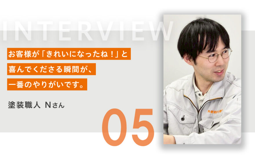施工が終わり、くすんでいた外壁がツヤツヤに生まれ変わったときは、本当に気持ちがいいです。お客様が「きれいになったね!」と喜んでくださる瞬間が、一番のやりがいです。