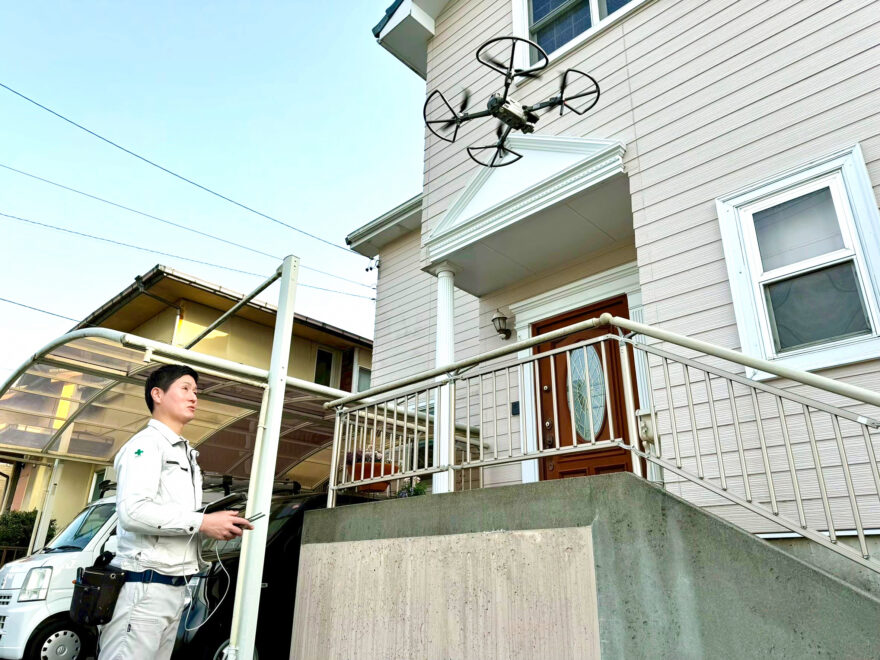 ◎ ドローンやタブレットを使って、外壁や屋根の状態をチェック。無理に売り込むことはなく、お客様の家を“正しく診る”ことに集中できるポジションです。