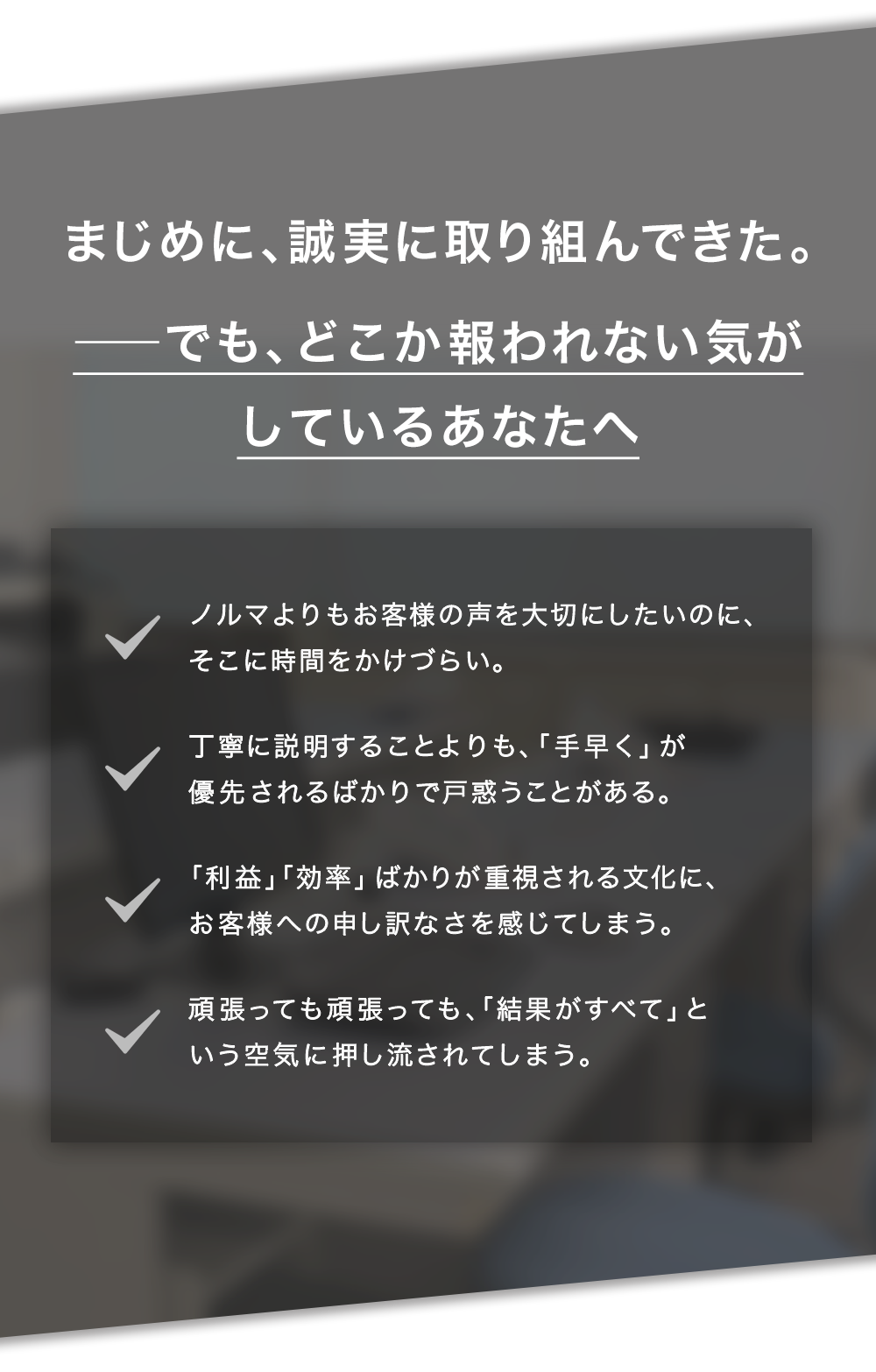 お客様に寄り添い、誠実に話を聞き、最適な提案をする。